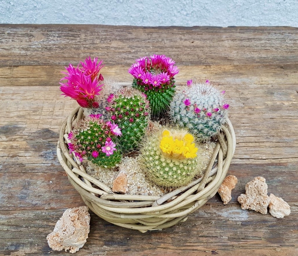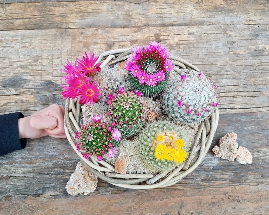 This kit is available to purchase from March to May, when cacti are blooming. The species and varieties that make up this composition will be according to the best flowering of the moment which will be an explosion of colours no matter what.