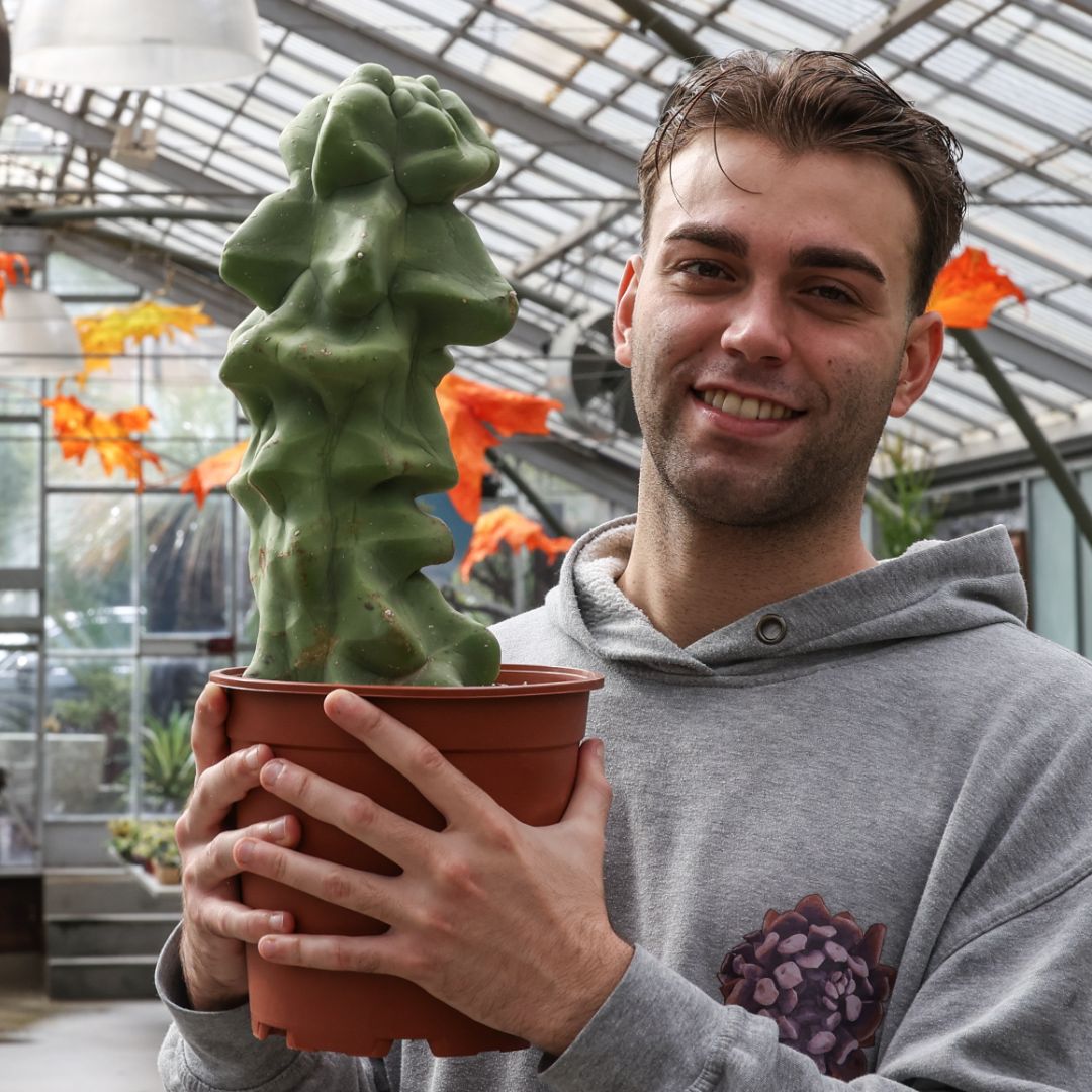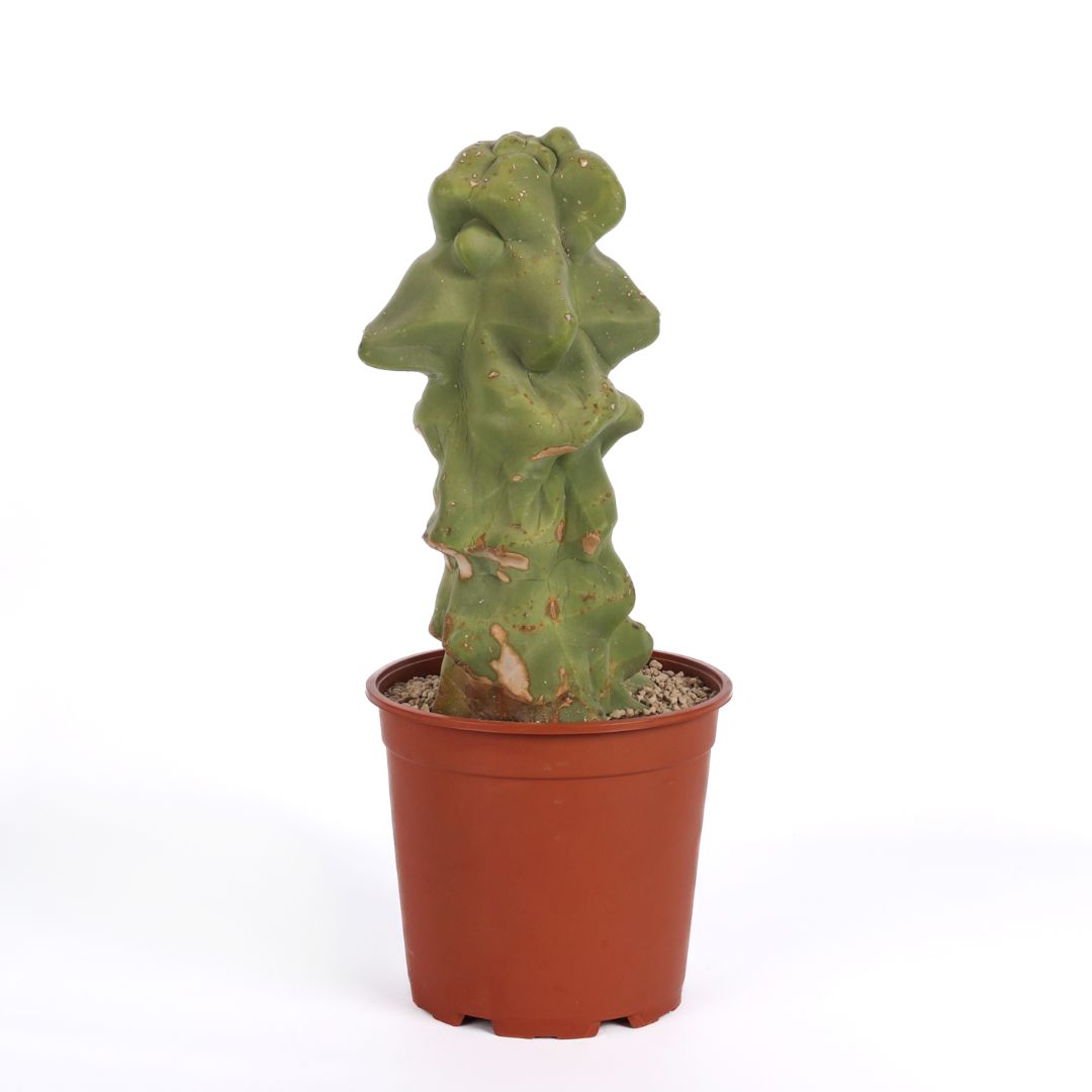 Belonging to the family of Cactaceae, this Lophocereus schottii major comes in a Ø 21 cm pot with a label indicating its botanical name.