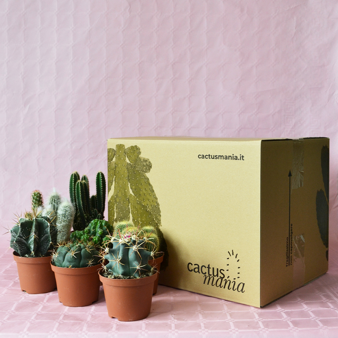 Belonging to the family of Cactaceae, these 8 Cactus plants are supplied in a Ø 10,5 pot with a label indicating their botanical name.