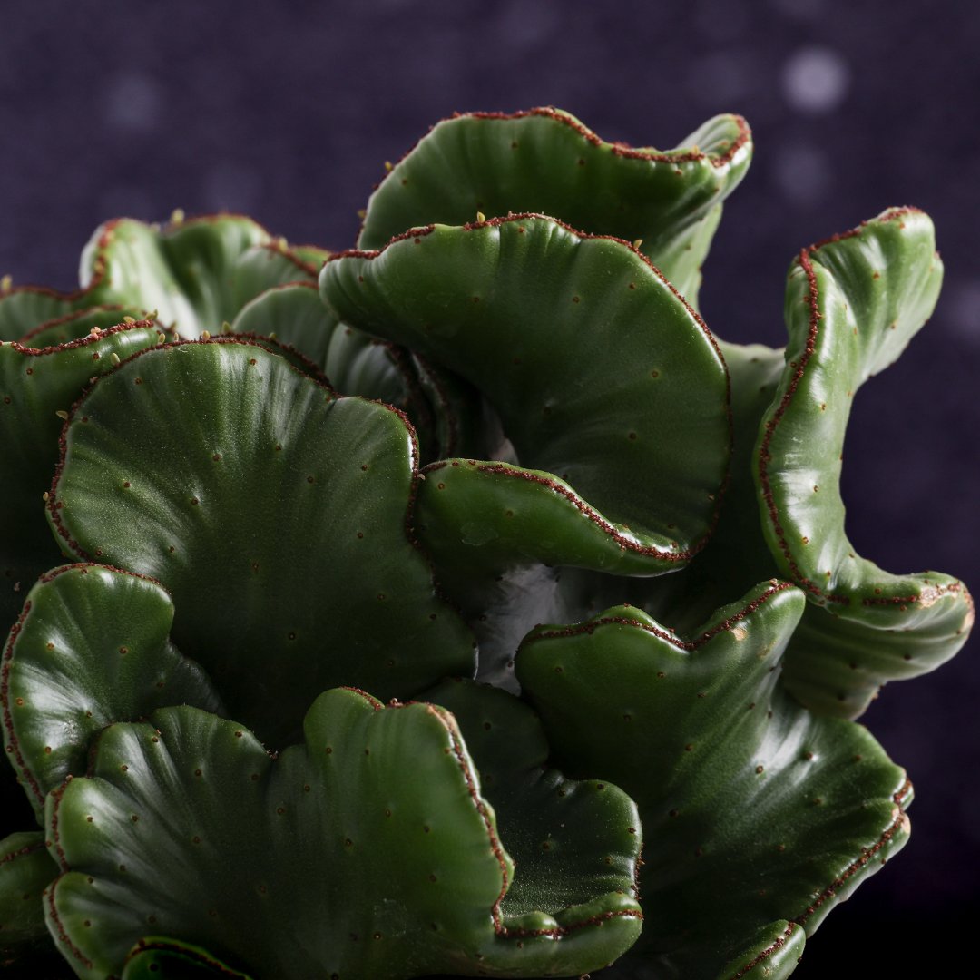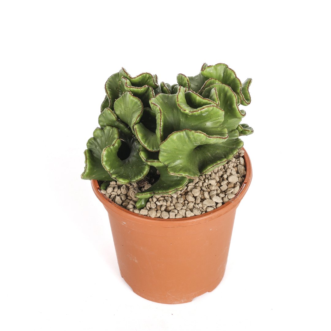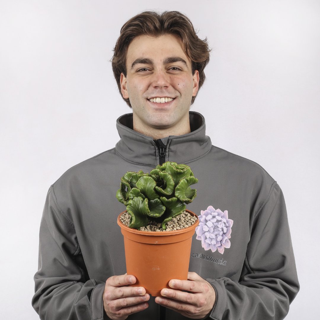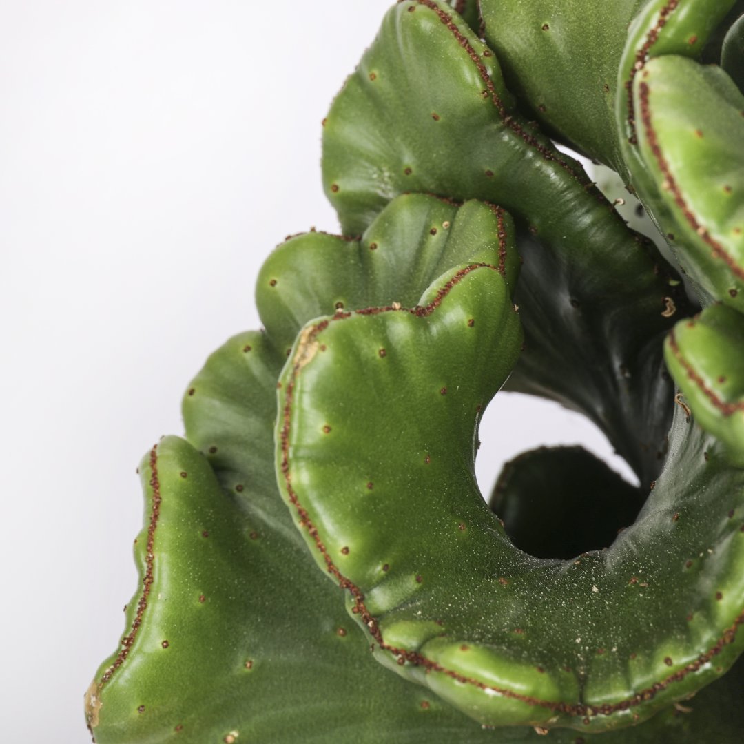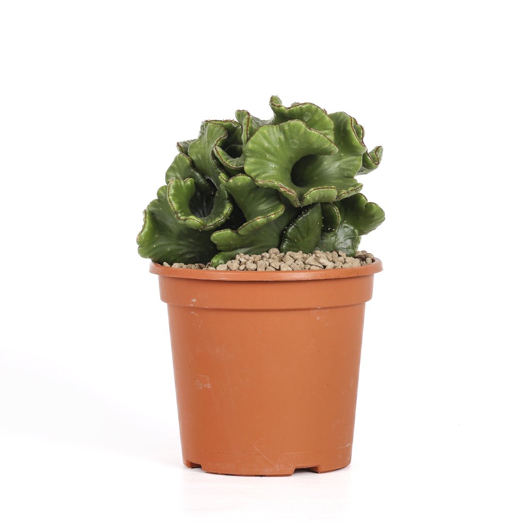 The Euphorbia leucodendron cristata form is a rare mutation of a succulent native to Madagascar. It is distinguished by its fan-shaped growth, creating a twisted, sculptural structure reminiscent of pale green coral, and is generally leafless. It is easy to care for, preferring very bright locations and requiring well-drained soil, as it particularly fears waterlogging. Perfect for collectors seeking unique forms and botanical oddities.