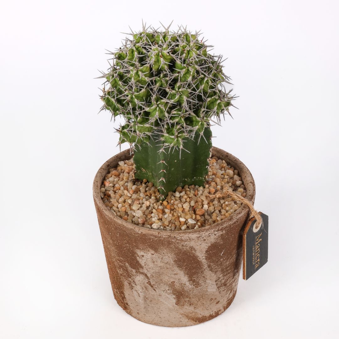 Euphorbia Mitriformis Ø 12 cm is a unique and fascinating plant, perfect to enrich any collection. You will receive it in the elegant terracotta pot with the wooden label bearing the botanical name.