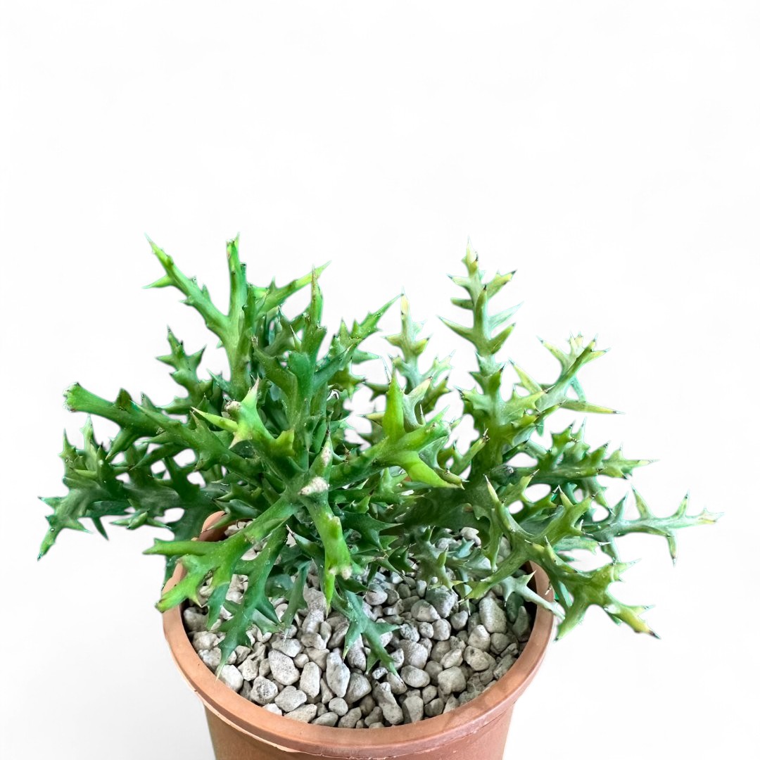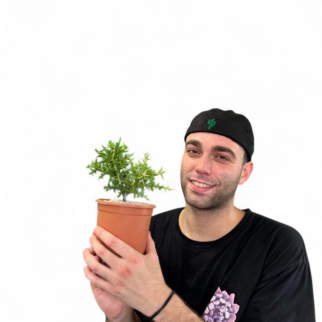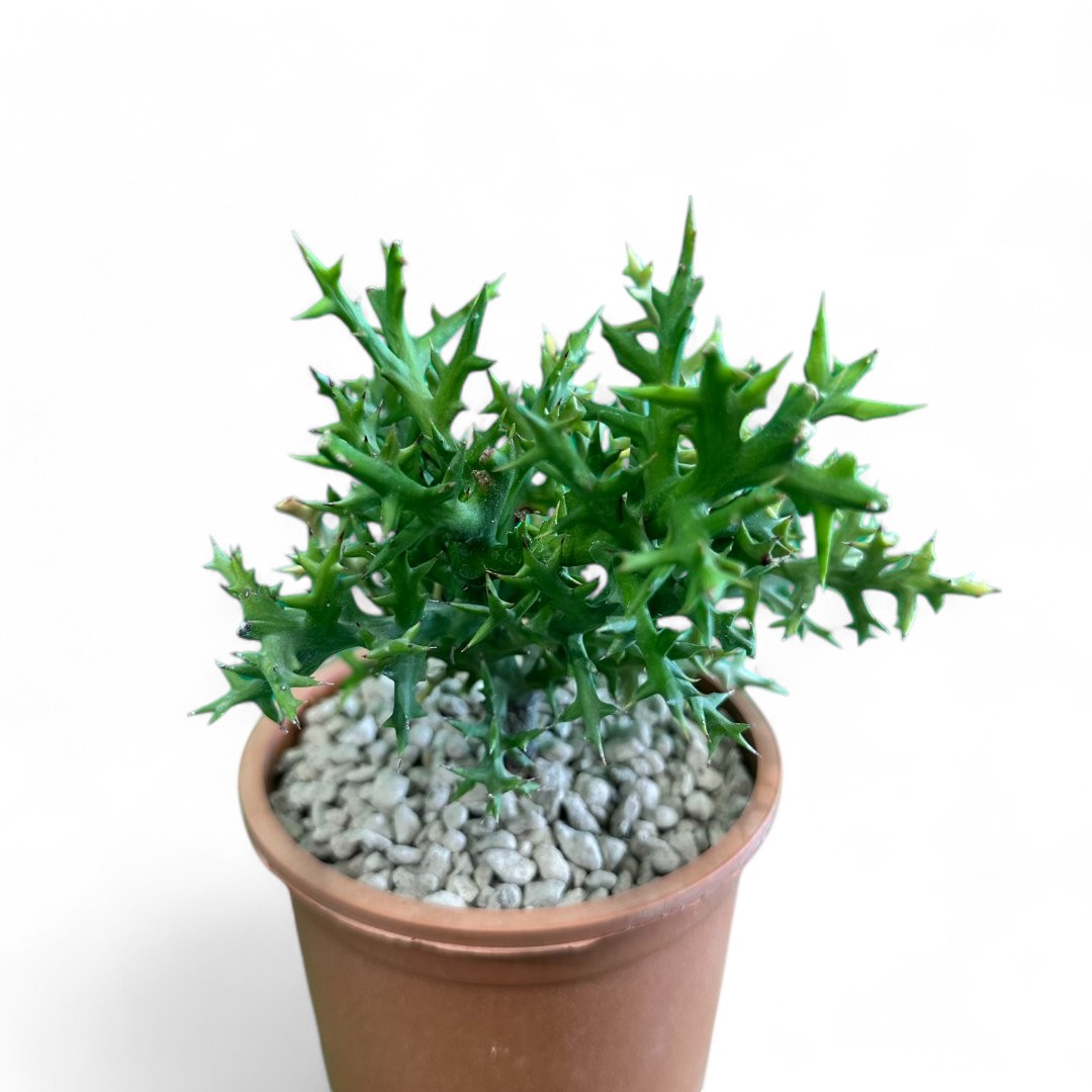 Euphorbia stenoclada, with its refined and natural shape, combines form and aesthetics. It requires little care, loves light, and fears waterlogging. Perfect for those seeking beauty and simplicity.