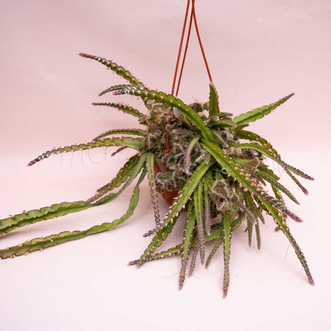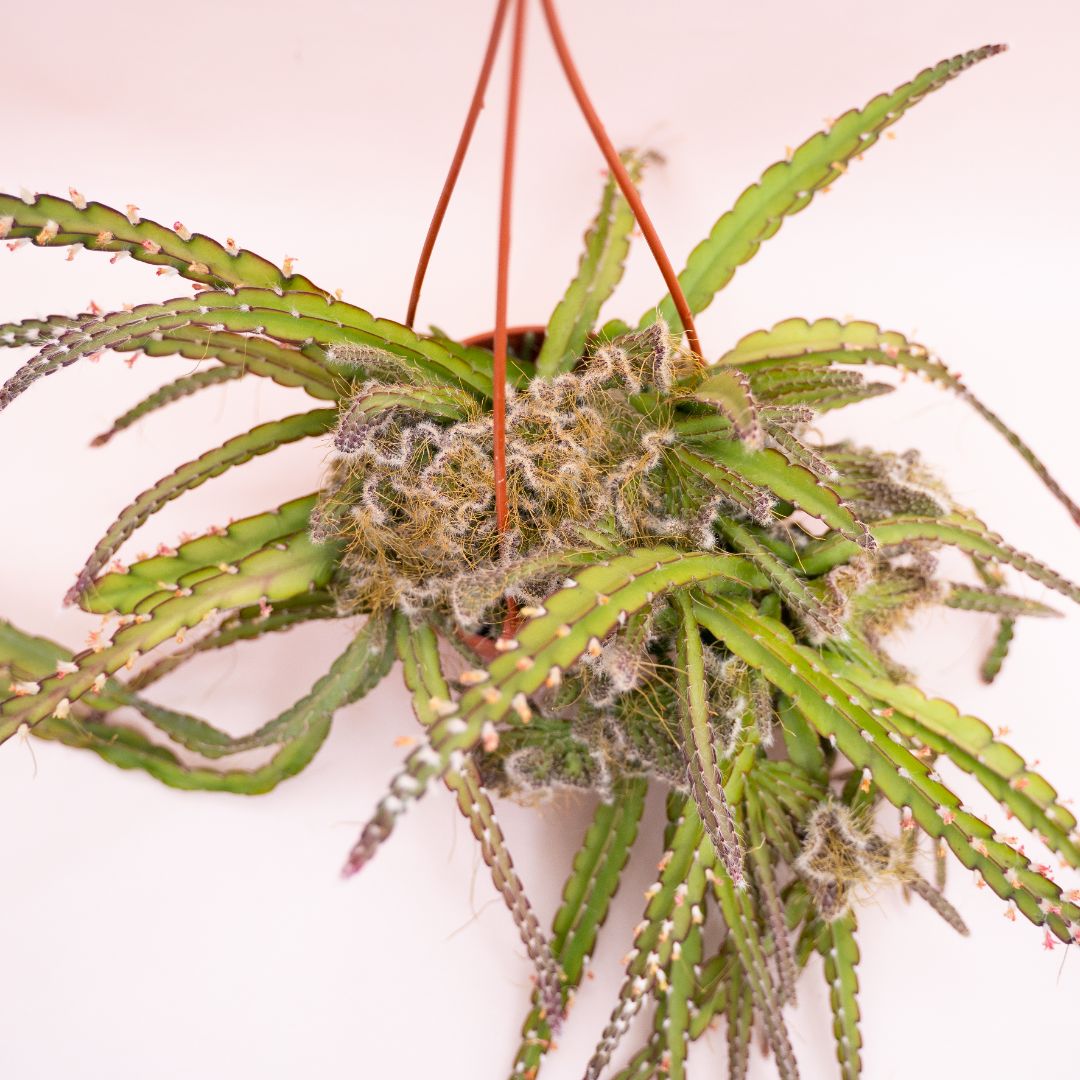 Belonging to the family of Cactaceae, this Rhipsalis cruciformis crestato comes in a Ø 14 cm pot with a label indicating its botanical name. This Rhipsalis cruciformis crestato is part of Cactusmania’s hybrid collection, has been cultivated for a long time, and has been selected for its hypnotic uniqueness.