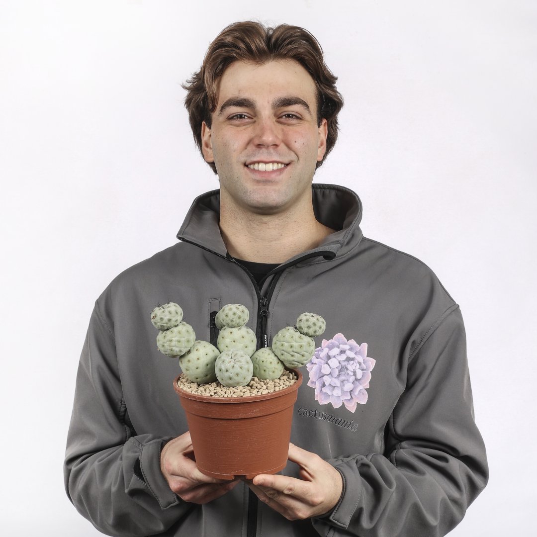 Tephrocactus geometricus is a rare and sculptural cactus, renowned for its shape composed of spherical segments that grow one on top of another with almost perfect geometry. This mature specimen has reached an extremely harmonious and geometric stage of development, highly sought after by growers for its aesthetic perfection. It requires little care, loves light, and fears water stagnation. Perfect for collectors and lovers of rarities.